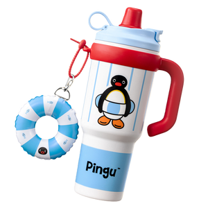 Vaso Pingu de acero inoxidable, interior apto para uso alimentario, tapa de doble uso, gran capacidad con asa y pajita para estilos de vida activos - MarTUBE®