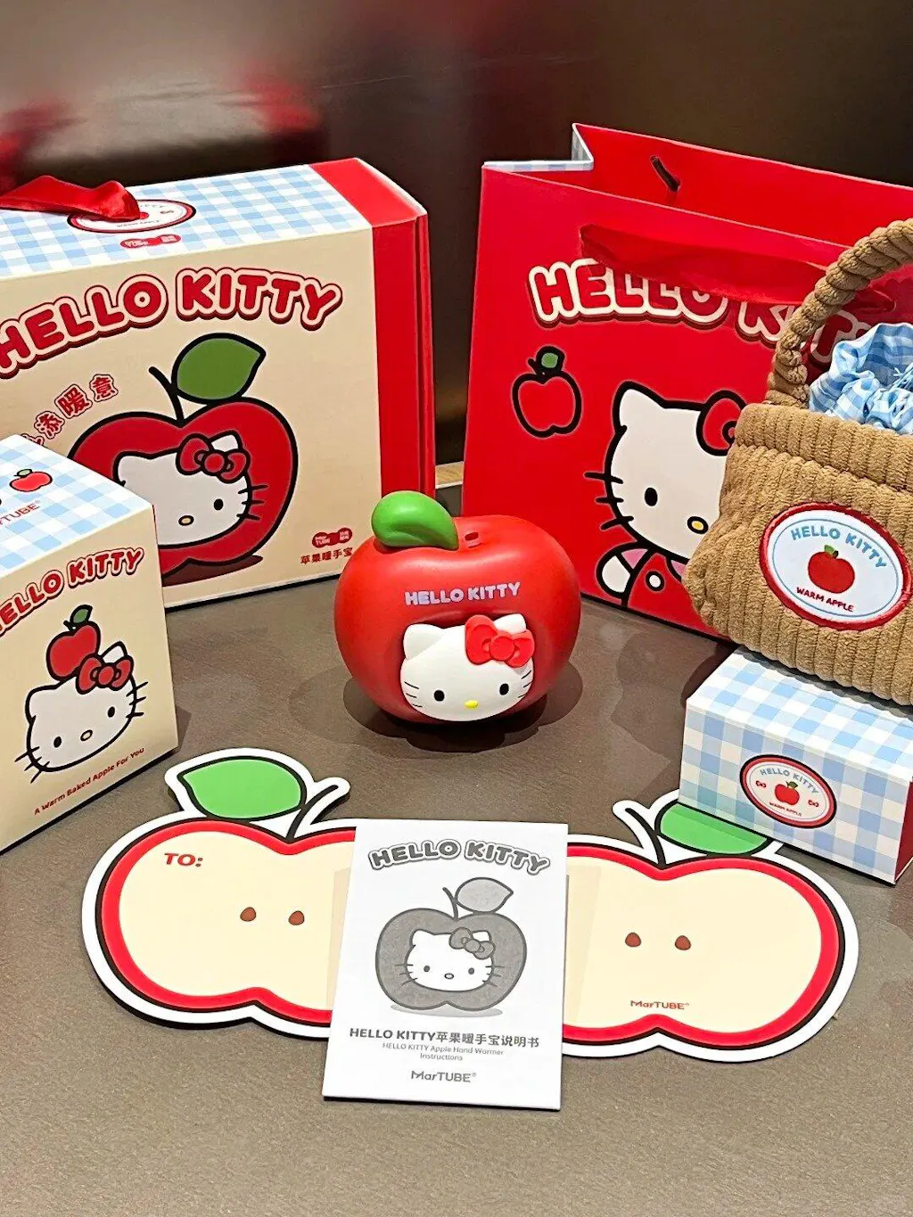 Hello Kitty Apple Hand Warmer, Compact & Portable, 3s Instant Heat, One-Touch Warmth, 9h Long Battery Life, Rechargeable & Eco-Friendly – MarTUBE®